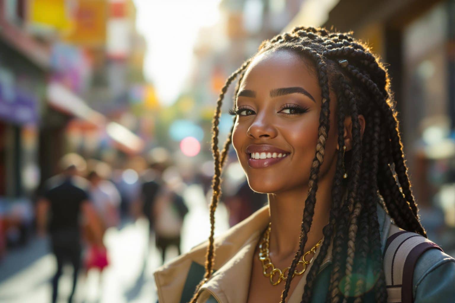Les box braids sont particulièrement adaptées aux cheveux longs et peuvent être un excellent choix pour celles qui mènent une vie active. Elles permettent de réduire le temps de coiffage quotidien, tout en offrant une solution durable qui peut durer plusieurs semaines. Que ce soit pour un entraînement intense ou une sortie entre amis, ces tresses restent impeccables et stylées.